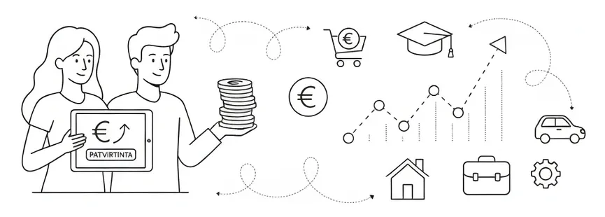 • Skolų refinansavimas: uurimų brangesnių paskolų (pvz., greitųjų kreditų) padengimas viena, pigesne vartojimo paskola.